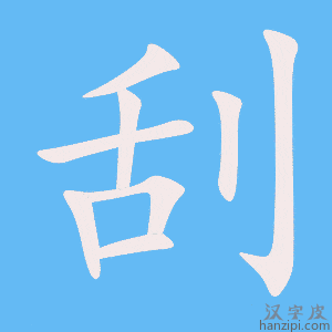 | 释义 | 1.用刀等贴着物体的表面移动,把物体表面上的某些东西去掉或取下来:~胡子。~锅。~下一层皮。 2.在物体表面上涂抹(多用于糨糊一类稠东西):~糨子。 3.搜刮(财物)。 4.(风)吹:又~起风来了! 繁体字:刮 异体字:劀简体部首:刂 部首笔画:2 总笔画:8繁体部首:刀 部首笔画:2 总笔画:8康熙字典笔画( 刮:8;刮:15; ) |