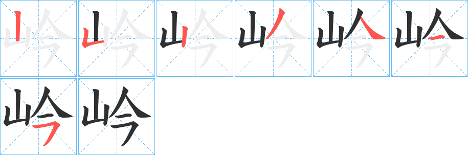《岒》字的笔顺分步演示(一笔一画写汉字)