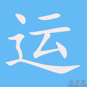 | 翻译 | 英语 run; simplified form of 運 luck, fortune; ship, transport 德语 Vermögen, Glück, Schicksal (S),bewegen, transportieren, benutzen, anwenden (V) 法语 transporter,déplacer,appliquer,utiliser,fortune,chance,destin |